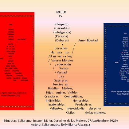 Los Caligramas según el Venezolano Daniel Ruíz Correa desde esta publicación ¨¨...se aprecian como poesía experimental o visual desarrollada por la autora... logra combinar el impacto visual de la forma con la riqueza expresiva de su prosa poética. " referencia en el prólogo del libro poético Como Gotas en Las Rosa ; así como En la Antología Las Chicas Van al Baile 4o poetas Venezolanas, de Reinaldo sierra Linarez y José Guillermo Varga, Intelectuales de la casa del Poeta Peruano, ciudad de lima, la denominan: Especialista en Caligramas.